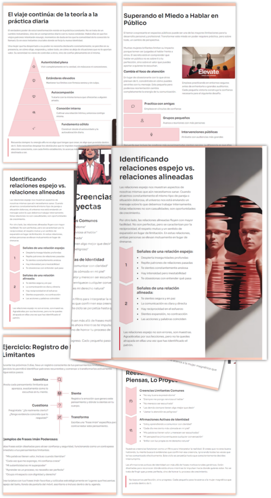 Este es el camino de transformación que te espera. De la inseguridad al magnetismo personal, del miedo a la confianza plena en ti misma.